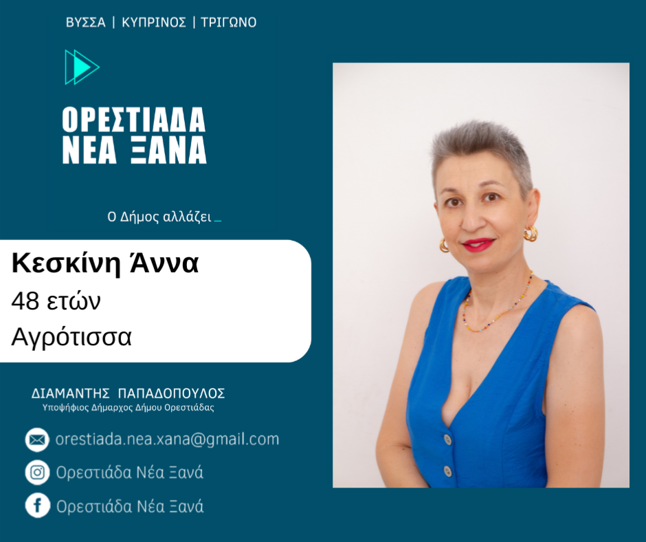 - Κεσκίνη Άννα του Νικολάου – 48 ετών – Αγρότισσα