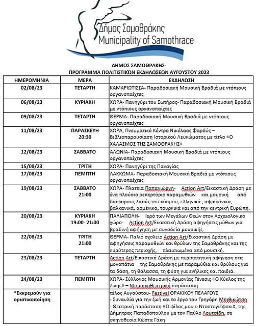 Από τον Δήμο Σαμοθράκης, ανακοινώθηκε το πρόγραμμα των πολιτιστικών εκδηλώσεων για τον Αύγουστο 2023
