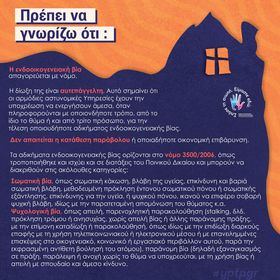 - Αν γνωρίζω ότι σε κάποιον συνάνθρωπό μου (φίλο, συνάδελφο, γείτονα κ.α.) ασκείται ενδοοικογενειακή βία,