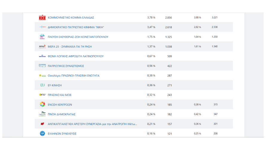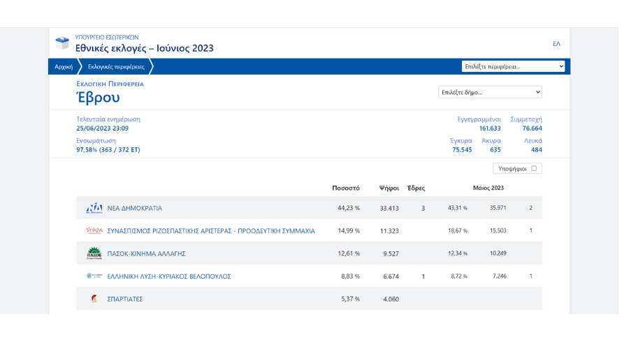 Να τονίσουμε ότι τα συγκεκριμένα αποτελέσματα αφορούν το 98,12% της ενσωμάτωσης βάση της εικόνας που δίνει το Υπουργείο Εσωτερικών.