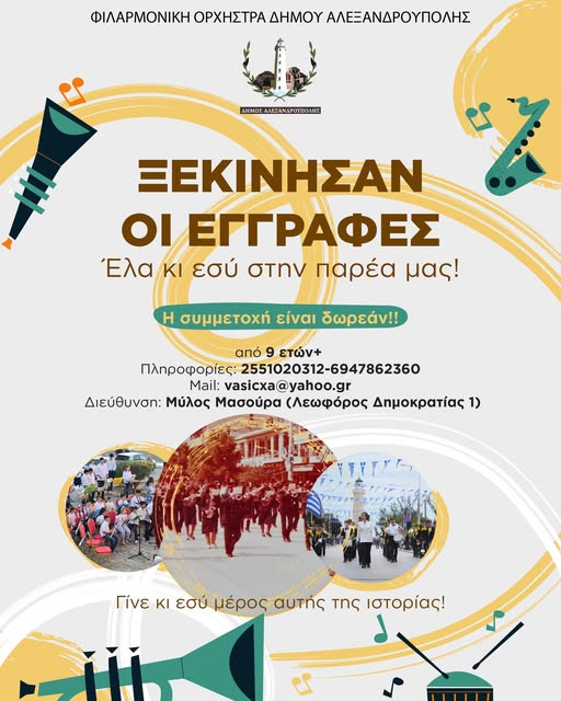 Έναρξη εγγραφών στη Φιλαρμονική Ορχήστρα του Δήμου Αλεξανδρούπολης