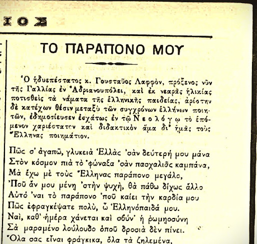 Απόσπασμα του ποιήματος του Λαφφόν από την εφημερίδα “Ήλιος”