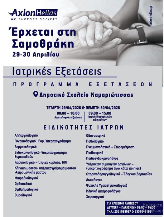 Η Axion Hellas επισκέπτεται τη Σαμοθράκη και υλοποιεί ένα πλούσιο πρόγραμμα δράσεων για μικρούς και μεγάλους, ενισχύοντας την εκπαίδευση, την υγεία και τον πολιτισμό στο νησί.