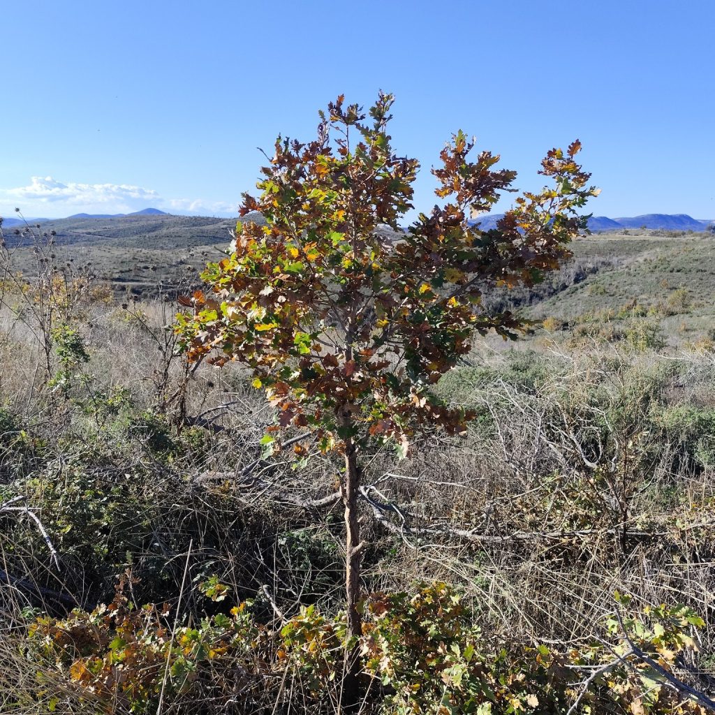 Παράλληλα με τις φυτεύσεις που πραγματοποιήθηκαν, στην περιοχή παρατηρείται κατά τόπους φυσική αναγέννηση θαμνώδους και πλατύφυλλης βλάστησης. Καθώς έχουν περάσει δύο χρόνια από την πυρκαγιά και η φυσική αυτή αναγέννηση έχει φτάσει σε ικανοποιητικό ύψος (έως και 1 μέτρο σε ορισμένα σημεία), επιχειρήσαμε να κάνουμε το κάτι παραπάνω, προχωρώντας στην αραίωση των κλαδιών ή, κατά κοινή ονομασία, «μονοβέργισμα» των νεαρών δέντρων, και συγκεκριμένα των βελανιδιών που έδωσαν βλαστούς από τις ρίζες τους.
