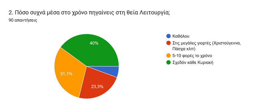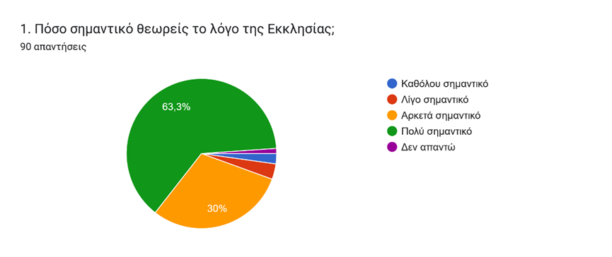 Σύμφωνα με την καταγραφή των απαντήσεων όπως αποτυπώνονται στο πρώτο γράφημα, 9 στους 10 μαθητές και μαθήτριες, θεωρούν τον λόγο τη Εκκλησίας πολύ σημαντικό/αρκετά σημαντικό. Πρόκειται για μία διαπίστωση της εμπιστοσύνης που δείχνουν οι μαθητές προς την Εκκλησία, παρ’ όλο που ένας/μία στους δύο (γράφημα 3) δυσκολεύεται με την χρήση της αρχαίας γλώσσας στα κείμενα της Εκκλησίας, την ίδια στιγμή που είναι μεγάλο το ποσοστό (περίπου 7 στους 10) εκείνων που δεν δυσκολεύονται από την χρονική διάρκεια των Ακολουθιών (γράφημα 4).