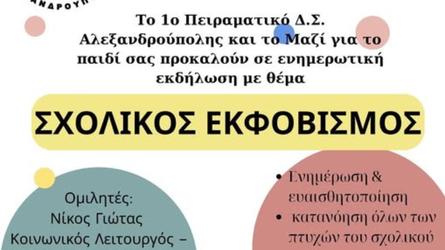 Στόχος της εκδήλωσης είναι η ενημέρωση, η ευαισθητοποίηση και η ενεργοποίηση της σχολικής κοινότητας – μαθητών, εκπαιδευτικών και γονέων…